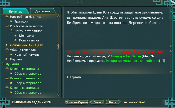 Недостаточный уровень - получить награду будет невозможно