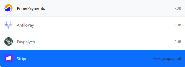 После того , как мы определились с количеством пополнения остаётся выбрать платёжный шлюз (Систему пополнения через , которую вы хотите оплатить средства) . Вот все возможные способы оплаты: Снимок экрана 2026-02-08 203945.png , Stripe - международная система оплаты через доллары , если проживаете вне СНГ.